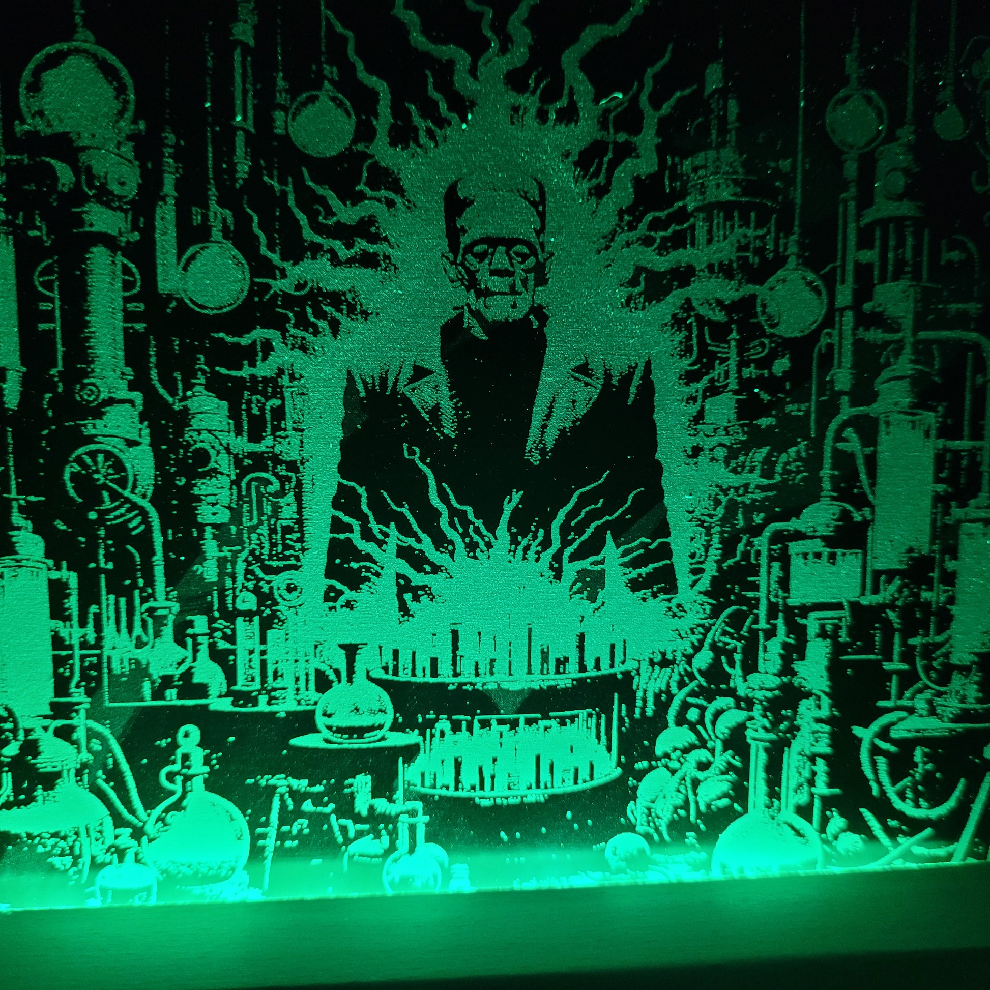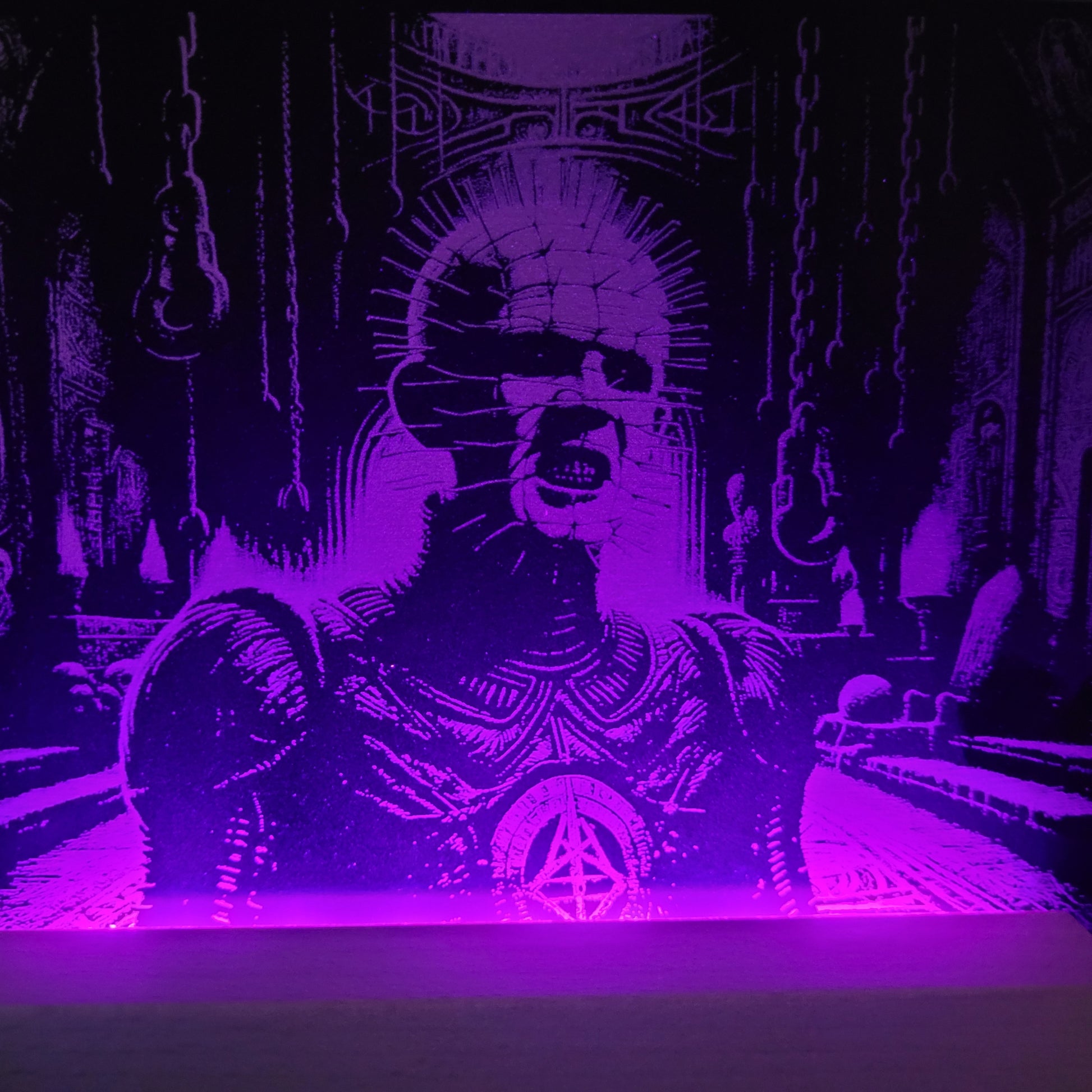 Metallic slates are laser engraved and measure 7x5 inches. They sit within a light-up wooden base, measuring 7.1x3.9x3.15, that shines LEDs onto the surface. Light colors can be changed with the simple press of a button! Base is USB powered.